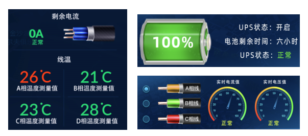 實時監測用電設備、環境監測設備的各項參數(電流、電壓、剩余電流、線溫、環境溫度、UPS等數據)進行圖形化展現。